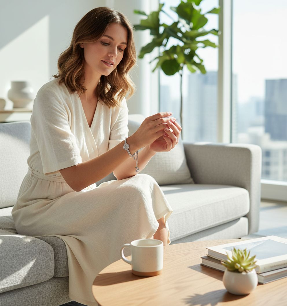 Adjustable Diamond Heart Tennis Bracelet | Sterling Silver Bolo Clasp
